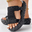 These ladies' sandals combine a stylish, woven design with a soft platform sole that offers comfort all day long. Thanks to the slip-on style, they are easy to put on and take off. Ideal for summer days, both casual and slightly dressier occasions. The versatile sandals match various outfits and provide a trendy look.