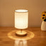 - Material: Wooden base and linen shade